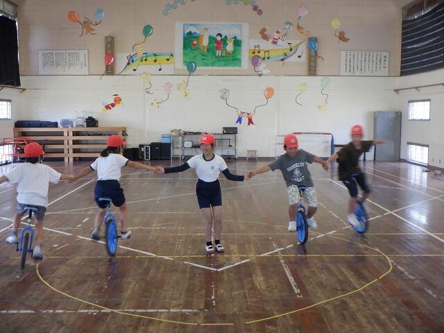 5月のクラブ活動は、一輪車です。みんな上手に乗ることができます。