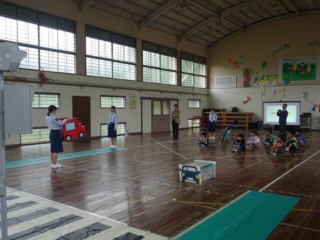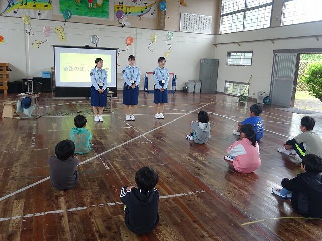 都城警察署の交通安全協会から3名の講師にきていただいて交通安全教室を行いました。