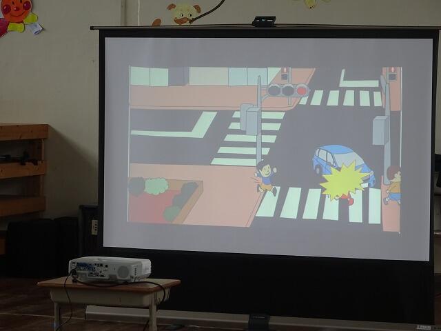 画像を使って交通ルールや事故の原因になりやすい事例などについて、わかりやすく説明していただきました。