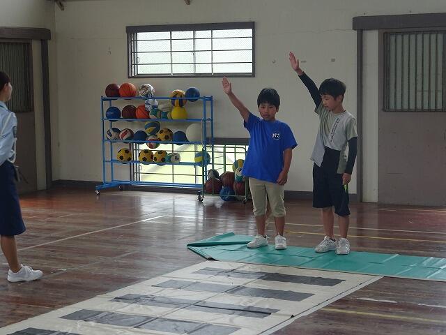 4種目目は、俊敏性をみる反復横跳び、5種目目は、柔軟性をみる長座体前屈を行いました。