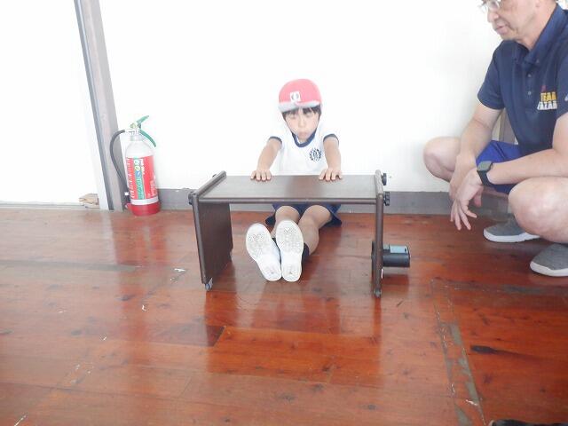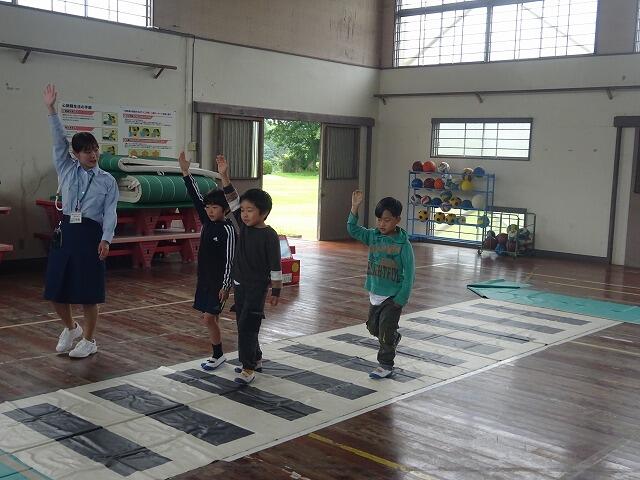 お話の後は、体育館に横断歩道などのコースを作って、実際に安全な歩き方や横断の仕方について学びました。
