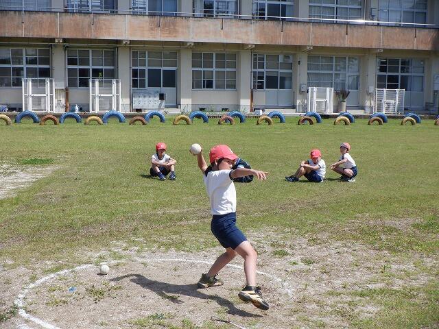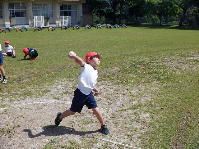 1種目目は、ソフトボール投げでした。1人2回ずつ投げました。