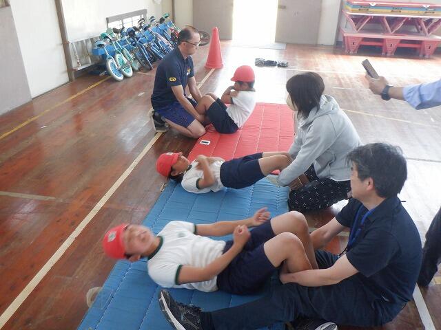 3種目目は、上体起こしでした。30秒で何回できるか計測しました。