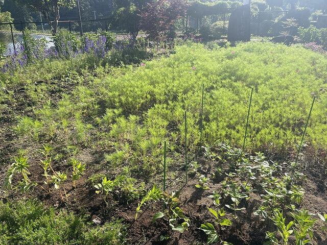 今朝は、ヒマワリ、ホウセンカ、ホオズキの苗を植えてくださいました。