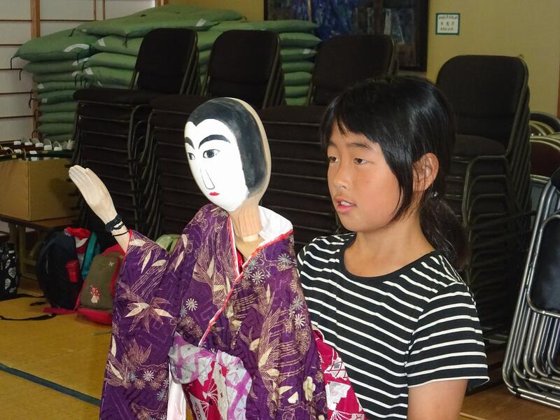 人形浄瑠璃資料館では、担当の方から説明を受け、実際に浄瑠璃の様子を見たり、直接人形に触ったり、資料を見学したりしました。