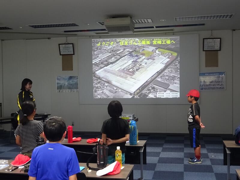 資料館を見学した後は、隣の公園で昼食を食べて、午後は住友ゴムの工場に見学に行きました。