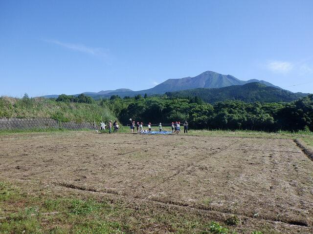 田んぼは、学校のすぐ側で、高千穂峰が見渡せる絶好の場所です。
