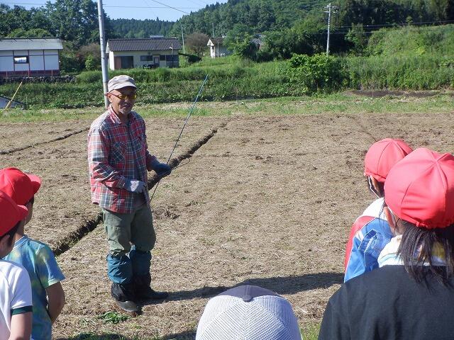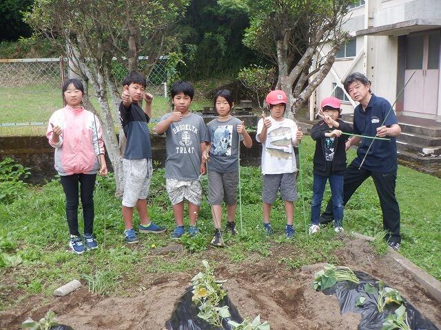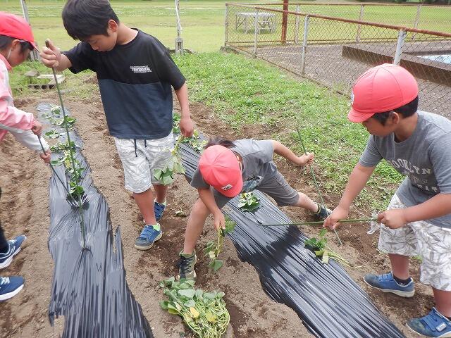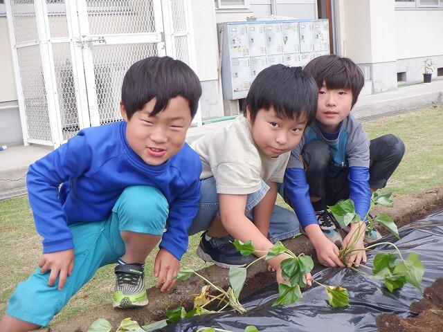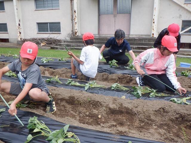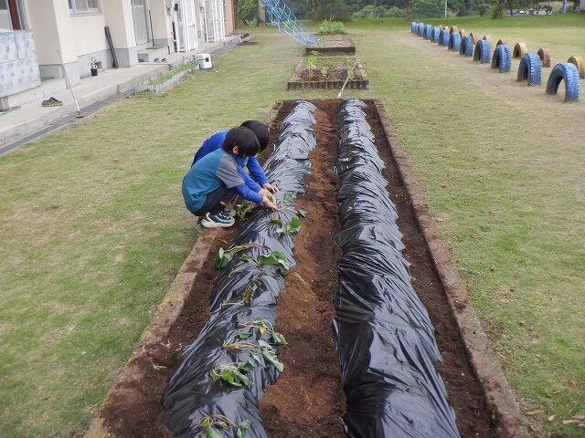 4・6年生は、体育館南側の畑に植え付けを行いました。