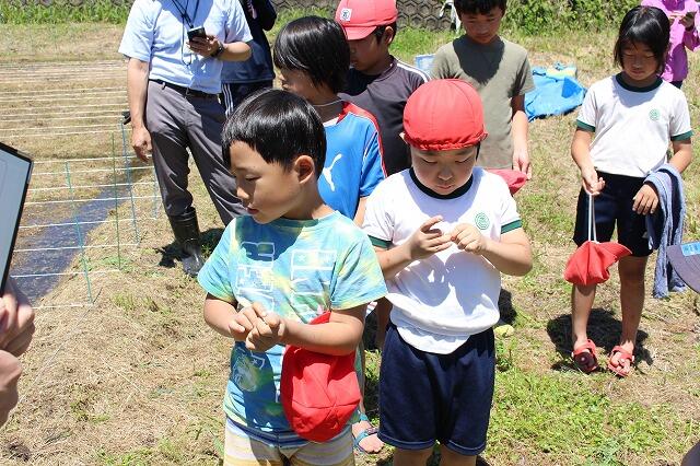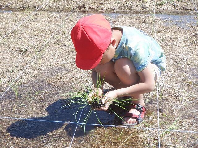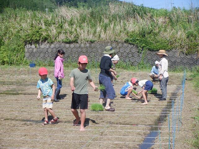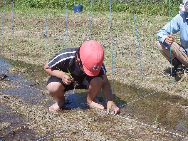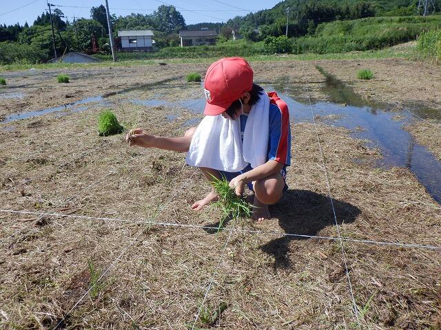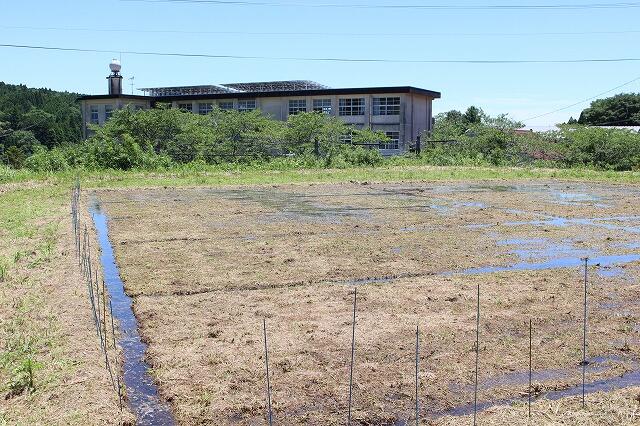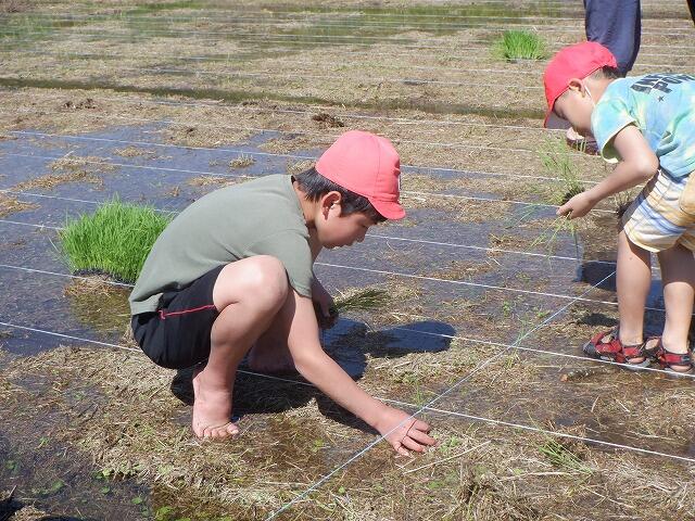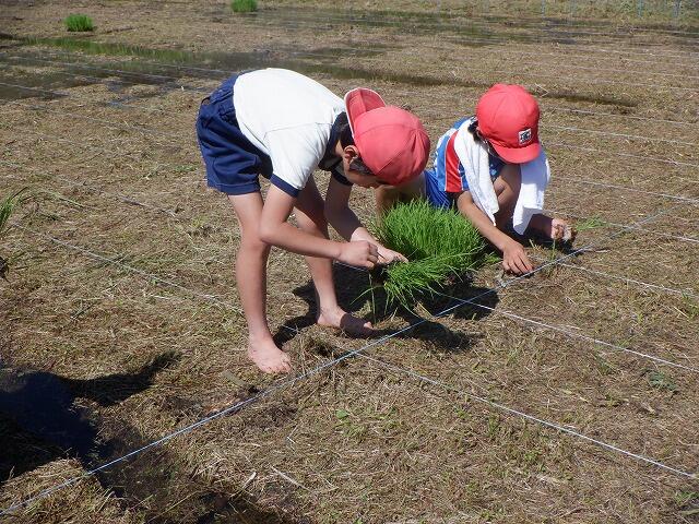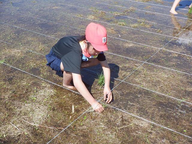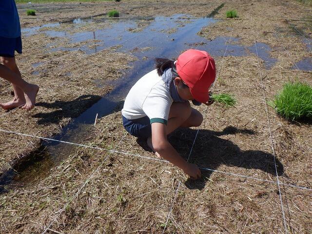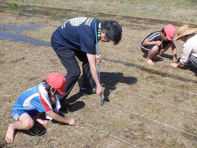 田植えには、保護者の方も手伝いに参加してくださり、大変助かりました。ありがとうございました。田植えの準備の時間を入れて3時間ほどで全面に苗を植え付けました。昨年度は、30kgの収穫があったそうです。今年度は、それ以上の収穫を期待しています。