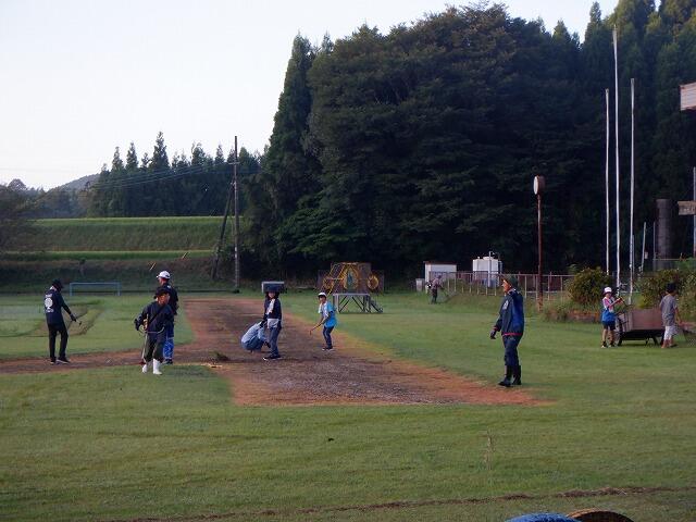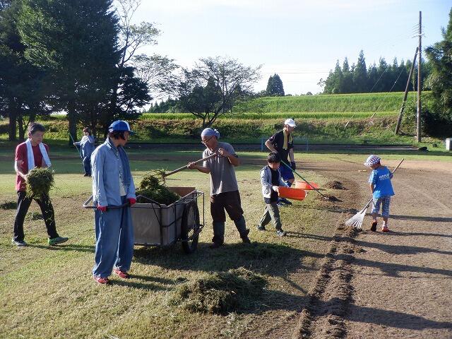 朝6時に集合して、8時過ぎまで運動場の草刈りを中心に行いました。