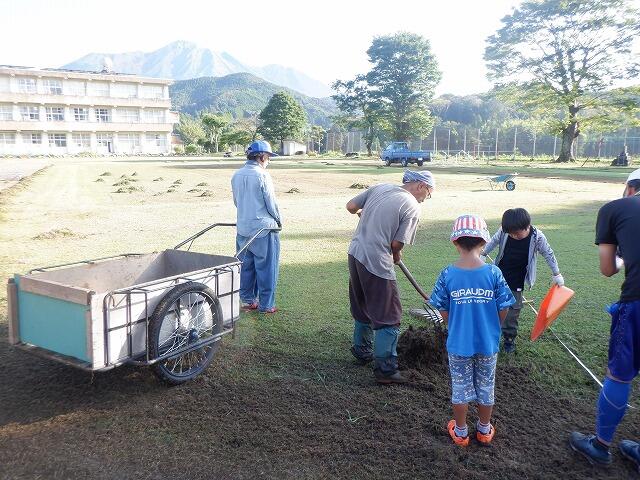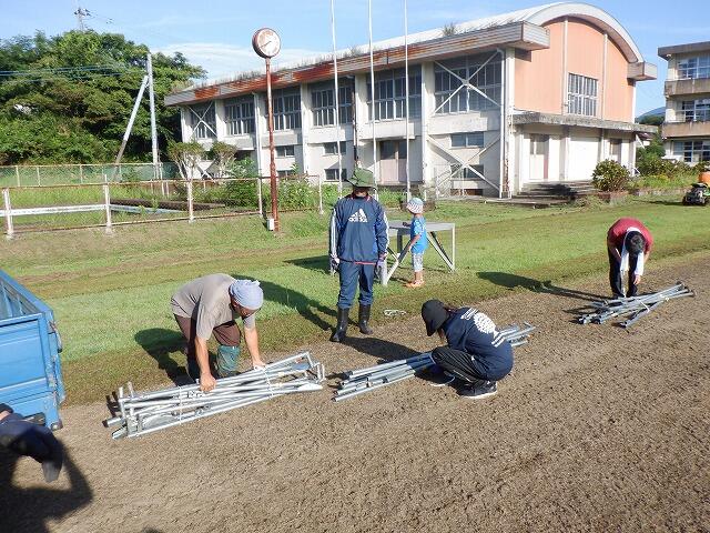9月15日(日)に行う吉之元小スポーツフェスタのために運動場を整備しました。