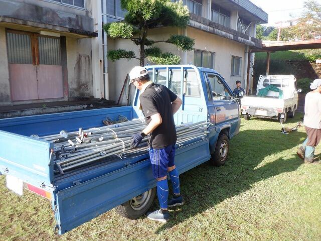 併せて、テントの準備も行いました。台風が近づいているので、骨組みを作るだけでした。