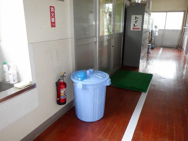 吉之元小学校では、断水に備えて水を準備しました。また、教育委員会から停電対策として発電機が準備されました。