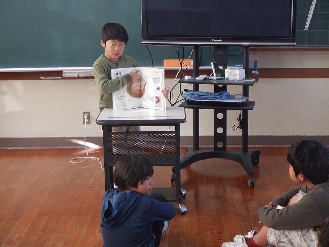 昔の暮らしの図鑑を紹介する2年生 「おそうじ隊長」の本を紹介する3年生