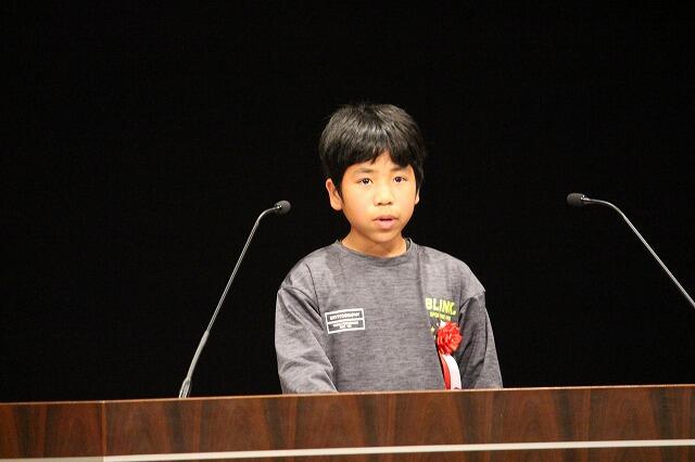 吉之元小の代表として、6年の谷口零士さんが「あきらめない自分になる」という題で、発表を行いました。零士さんの発表は、今年度転入してきた友達が一輪車に乗れるようになるためにあきらめずに努力している姿を見て、感動したことを自分のことを振り返りながら堂々と発表してくれました。普段経験することのない大勢の人たちの前で発表するのは、初めての体験でしたが、臆することなく、落ち着いた態度で発表することができました。
