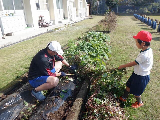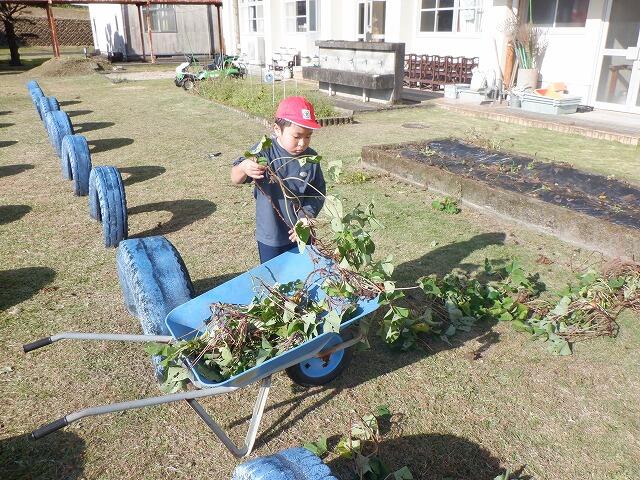 前日にさつまいもの葉や茎を取り除いて、いも掘りの準備をしました。