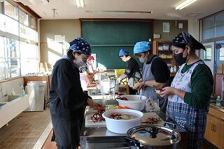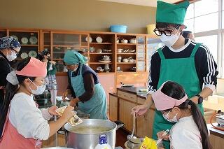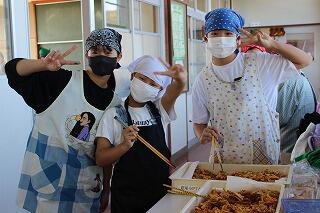 8時から保護者や地域の方々が材料の下準備をしてくださって、子どもたちは2時間目から活動に参加しました。子どもたちが材料を切る分を残してくださるので、子どもたちは、自分で作った感覚を味わうことができました。