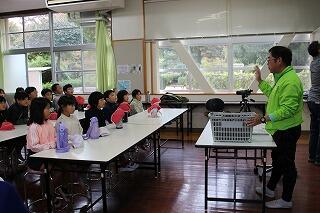 毎年、御池青少年自然の家の職員の方を講師にお招きして、全校児童参加の野鳥教室を行っています。