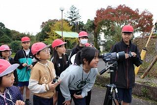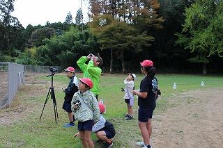 子どもたちは、野鳥の鳴き声が聞こえると、何という野鳥なのか名前を質問して、懸命に双眼鏡をのぞき込んでいました。