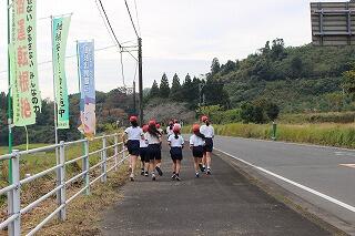 11月19日に、持久走で走るコースの試走をしました。参加した子たちは、元気よく走り出しそれぞれの学年のコースを確かめました。