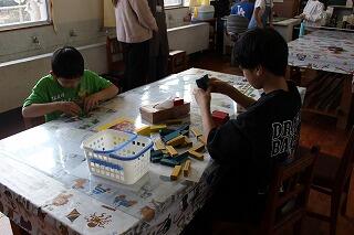 このテーブルでは、折り紙やジェンガを始めました。ここも異学年の子ども同士です。先生方に見守られている教室なので安心して放課後の時間を楽しんでいました。