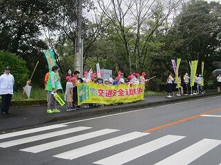 秋の交通安全運動に合わせて、あいさつ運動を行いました。地域の方々や交通指導員、夏尾中生徒の皆さんと一緒の活動です。旗や大弾幕を持って、道行く車に大きな声で「おはようございます」とあいさつ。子ども達もドライバーの皆さんも交通安全への意識が高まったことでしょう。