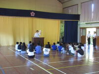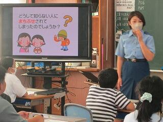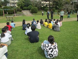 運動場で警察の方からお話いただいた後、各教室で避難の仕方についてふり返りました。