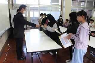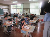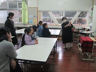 午前中、学校運営協議会が行われました。会議の前に運営協議会委員の方々に各クラスの授業を見ていただきました。