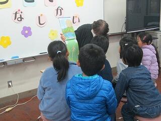 図書サポ先生セレクトの「14ひきのやまいも」を読み聞かせ。