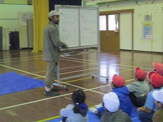 この日は4校時に不審者対応の避難訓練をしました。子どもたちが、ショックを受けないように犯人役の警察の方には、教室で自己紹介をしてもらいました。そして、いざ訓練です。今回はいつもの避難訓練とは違い、避難経路を自分で考えなければなりません。緊張の中で自分の身を守ることを懸命に考えたようです。みんなが集まって警察の方からお話を聞きました。学校だけでなく普段の生活の中での身を守る手立てを教えてもらいました。