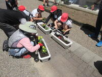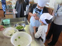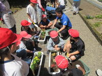 中学生のお兄さんお姉さんとの活動に 子どもたちも嬉しそうです。