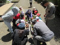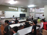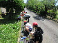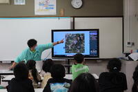 砂利をならす朝のボランティア「目立て」の様子を童画で分かりやすく説明したり、絶滅危惧種「ヒゴタイ」をクイズ形式で伝えたりすることができました。