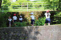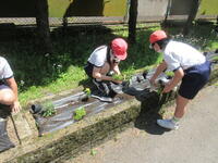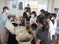 初めに、大淀川学習館で大淀川流域の魚や虫などの3D映像を観ました。飛び出してくる魚や虫に子どもたちは大騒ぎでした。その後は交流グループで館内の生き物を見て回りました。