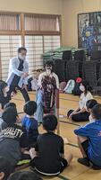 以前夏尾小で勤務されていた校長先生が、奴踊りの三味線の練習に来られました。