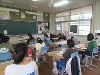 ちょうど国語「方言と共通語」を学んでいた5年生から質問を受け、方言を教えていただきました。
