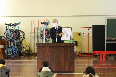 その後、始業式がありました。2人の児童が今年1年間の抱負、がんばることを発表してくれました。