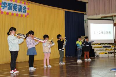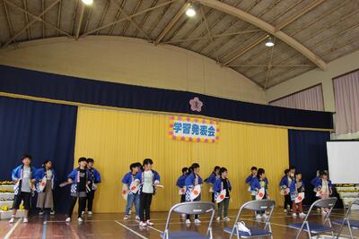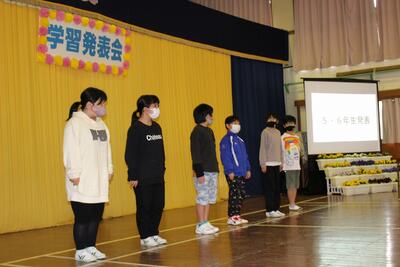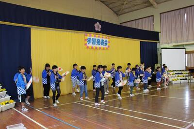 まん延防止特別措置延長のため約2週間延期していた『学習発表会』を実施しました。1・2年生は詩の群読「くまさん」「春の七草」「秋の七草」「いろはうた」と鍵盤ハーモニカの演奏「きらきら星」「こいぬのマーチ」を発表しました。3・4年生は、総合的な学習「夏尾の自然」をテーマに、校庭で見つけた生き物や植物について調べたことをプレゼンを用いながら発表しました。5・6年生は、総合的な学習「夏尾の環境」をテーマに、興味や疑問を持ったことについてインターネットや本などで調べ、まとめたことを発表しました。その後、全校児童で『奴踊り(やっこおどり)』と『サンバヤッサ』を披露しました。新型コロナウイルス感染拡大防止のため、全校合唱はできませんでしたが、保護者の皆様から温かい拍手をいただきました。