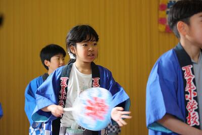 9月11日(日)の夏尾小中合同運動会に向けて、伝統芸能「奴踊り」の練習が始まりました。今回は、1・2年生に向けての基礎的な動き方の練習です。1フレーズずつ区切って踊りを覚えていきます。1時間の練習でしたが、子どもたちは扇子をもって真剣に踊っていました。合同運動会に向けて、これから踊りの練習をがんばっていきます。
