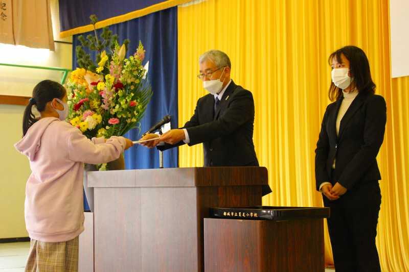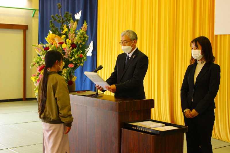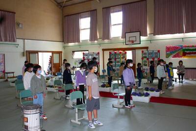 この1年、制限のある学校生活の中で、子どもたち一人ひとりができることを精一杯行ってきました。大きな声で挨拶ができるようになったり、周りの人に感謝の気持ちをもてるようになったり、心も体も大きく成長しました。今日の修了式でも、とても立派な態度でした。