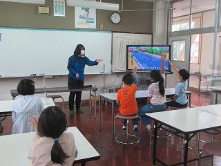 子どもたちが主催する児童集会が行われました。1年生も夏尾小にすっかり慣れ、自己紹介や名刺交換、しっぽとりゲームを楽しみました。全校児童が、とても仲の良い子どもたちです。じゃんけんで負けてもうれしそうに名刺交換。しっぽをとられてもにこにこ顔で楽しんでいる様子でした。