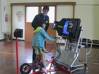残念ながら、今日の天気は雨。昼休みの時間は体育館で遊ぶことになりました。ボールで遊ぶ人、一輪車に乗る人、竹馬をする人、それぞれです。