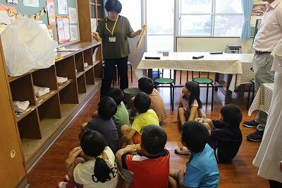 給食センターから栄養教諭の先生をお呼びして、センターの仕事内容について話を聞きました。その後、箸の持ち方の指導も受けました。