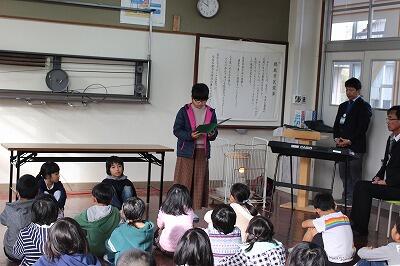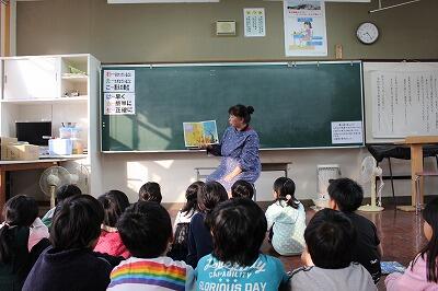 今日は、業間の時間に校長先生による読み聞かせがありました。