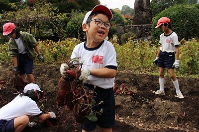 学校の庭に大豆を植え、収穫し、脱穀した大豆をみそにしました。