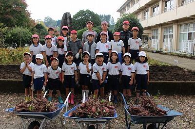 先日、学校に植えていた大豆を収穫しました。大豆は葉が枯れるまで収穫できません。一般的な作物と収穫の時期が異なるようです。この地区は都城市内でも気温の低い傾向がありますが、今年は、なぜか葉が枯れるのが遅く、なかなか収穫の目処がたちませんでした。ようやく押し迫って収穫することとなりました。