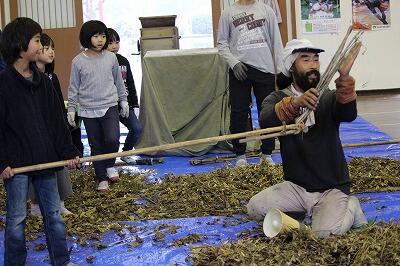 保護者のおかげで、昔の道具を使って作業させてもらうことができました。