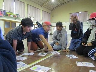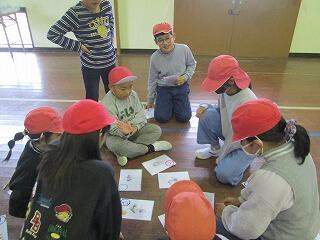 雨が降って運動場が使えないため、昼休みの時間に、全校児童で「健康かるた」をしました。保健委員会がそれぞれ健康に関する文言と絵を描き、ラミネートして作った楽しいかるたです。低・中・高学年に分かれて保健委員会の担当が読み札を読むと勢いよく パン!と札を取る音が聞こえます。たくさん取った人も取れなかった人も楽しくかるた取りをしていました。健康に関する読み札で、自分の体や生活習慣に関して書かれており、楽しく健康を意識するかるた取りとなりました。