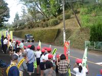 秋の交通安全運動に合わせて、あいさつ運動を行いました。地域の方々や交通指導員、夏尾中生徒の皆さんと一緒の活動です。旗や大弾幕を持って、道行く車に大きな声で「おはようございます」とあいさつ。子ども達もドライバーの皆さんも交通安全への意識が高まったことでしょう。
