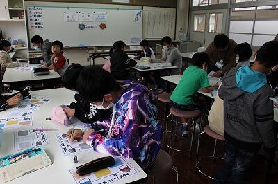 教室で、節分の行事や立春について学び、それぞれ学校生活や生活習慣等について振り返ります。改善すべき点は、自分の心の鬼としてワークシートに記入しました。忘れ物鬼や、宿題をしない鬼、すぐ怒る鬼など、いろいろな鬼がでてきました。