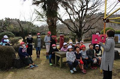 今日は、昼休みの時間に外で読み聞かせをしてくださいました。